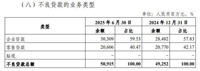 回看2025年半年度报告,光大银行企业不良贷款占比为59.53%,零售不良贷款占比为40.47%。在对公贷款当中,房地产业不良贷款位列该行不良贷款第一。