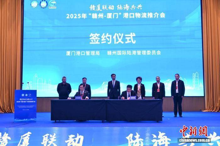 中新网赣州11月21日电 (熊锦阳)11月20日,“赣厦联动·陆海共兴”2025年“赣州—厦门”港口物流推介会在江西省赣州市南康区家居小镇举行。来自港口、铁路、航运、物流、制造等领域的嘉宾代表齐聚一堂,共绘陆海联动蓝图。
