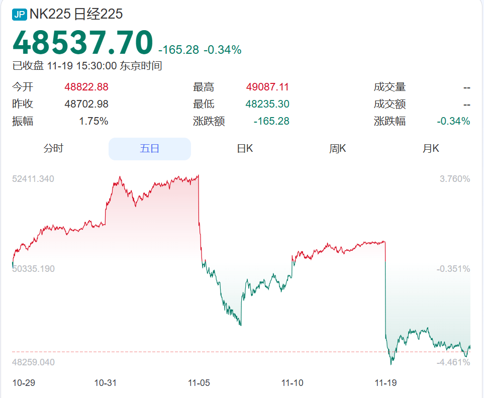 松井证券公司资深市场分析师窪田朋一郎说,投资者担心日中关系恶化,抛售似乎已扩大到所有与中国业务相关的股票。有专家指出,高市早苗拒绝撤回错误言论,令投资者纷纷采取避险操作。