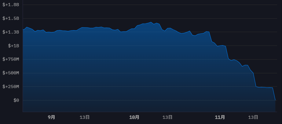 比特币的暴跌始于10月10日的一轮大规模清算事件。当日190亿美元的杠杆头寸被强制平仓,令整个加密货币市场蒸发约1.5万亿美元市值。此后市场一直未能恢复元气。