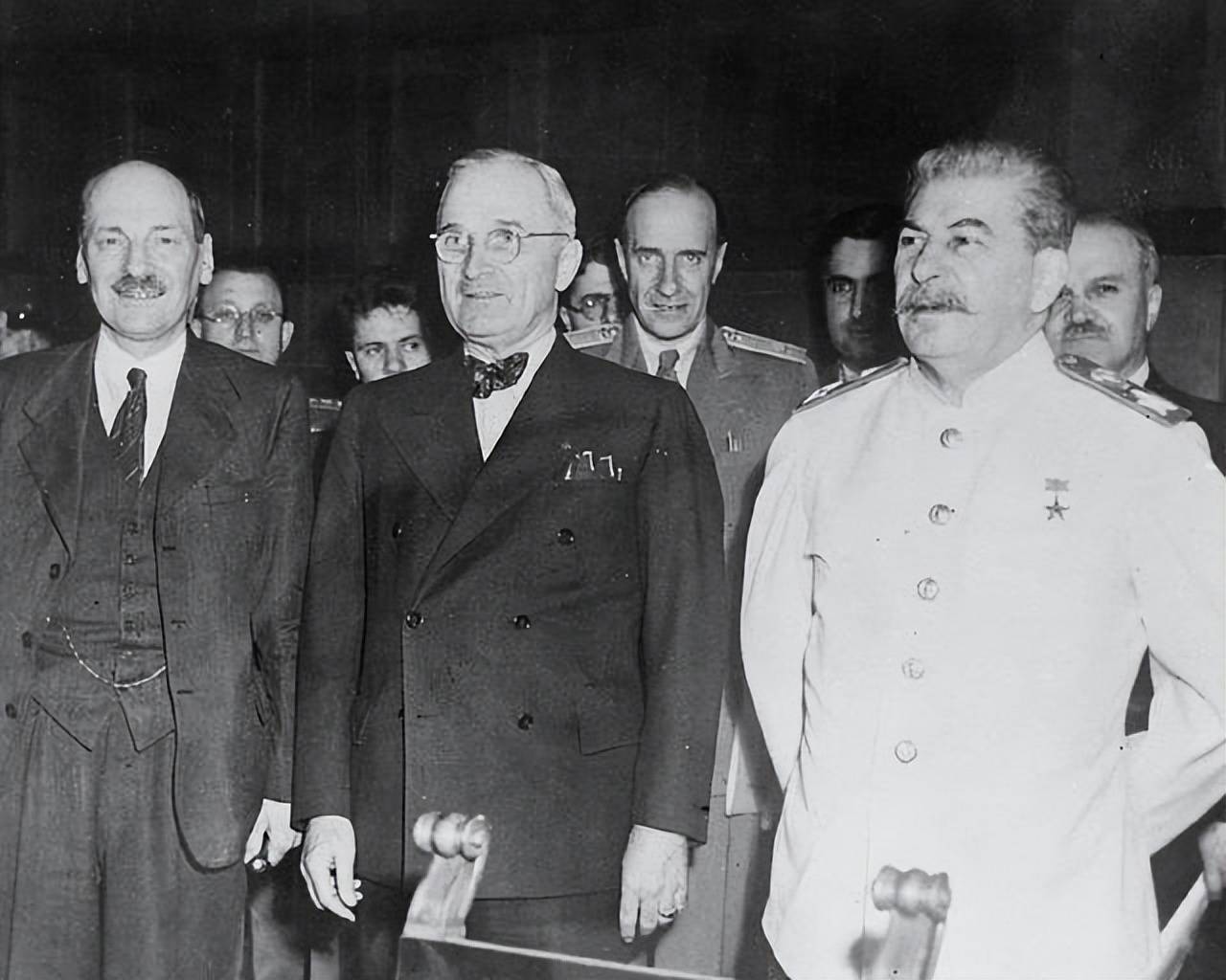 早在雅尔塔会议期间,美国、英国与苏联就已经开始讨论如何处理战后德国。德国宣布投降后,三国领导人在波茨坦会议上就德国的处理方式进行了正式商议。根据这些会议决定,德国被分为多个治理区域,所有军事力量必须解除,纳粹主义思想被禁止传播,同时设立了一个专门的机构负责战争赔款事务。英美苏三国从德国身上尽可能地榨取利益,其中苏联提出以劳动力替代部分赔偿,并进一步分割了德国的哥尼斯堡及其周边地区。其他战胜国则有权要求赔偿,并处理在各自领土上德国遗留下来的资产。