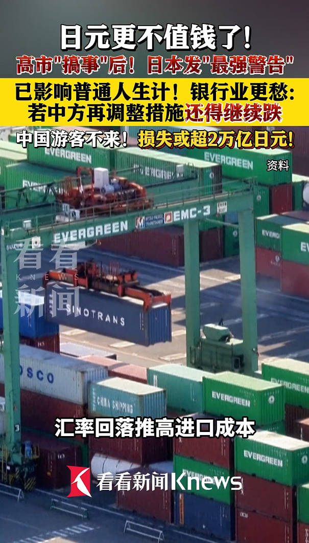 日本财务大臣近日发出“最强烈警告”,直言对日元贬值深感忧虑。汇率回落推高进口成本,已对日本普通家庭生计与中小企业经营形成实质压力。(来源:看看新闻Knews)