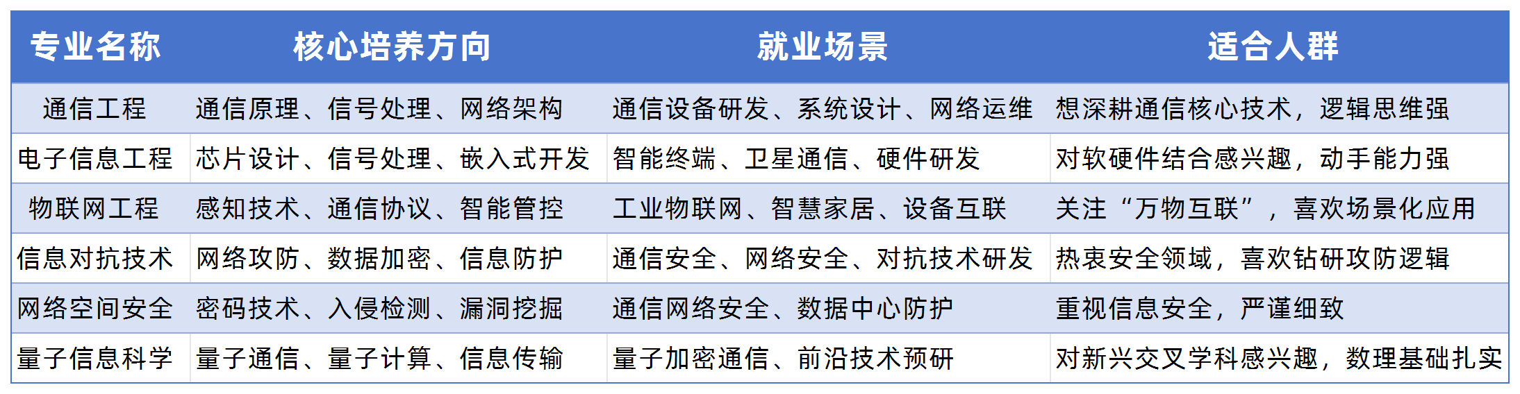 不少专业名称含“通信”“信息”,实则所属大类、培养方向完全不同: