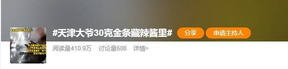 话题#天津大爷30克金条藏辣酱里#