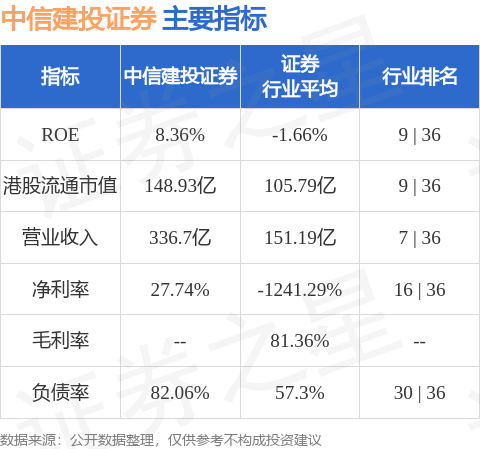 中信建投证券港股市值148.93亿港元,在证券行业中排名第9。主要指标见下表: