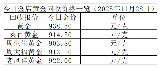 另外,今日黄金回收价格上涨6.5元/克。不同品牌回收价差较大,以下为部分金店回收参考价: