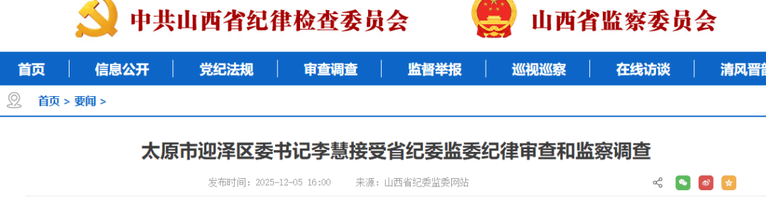 太原市迎泽区委书记李慧涉嫌严重违纪违法,目前正接受省纪委监委纪律审查和监察调查。