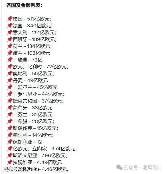 根据该计划德国承担513亿欧元的担保,法国承担340亿欧元,意大利承担251亿欧元,爱尔兰承担44亿欧元,匈牙利承担14亿欧元,斯洛伐克承担15亿欧元......。