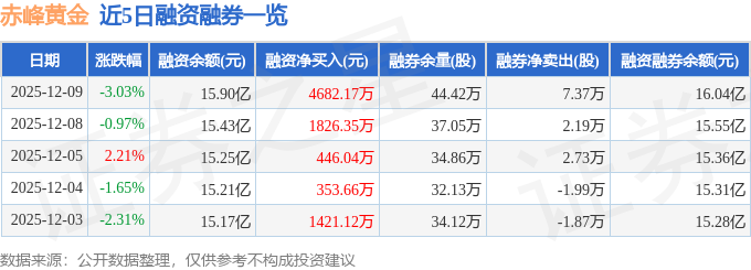 赤峰黄金融资融券信息显示,融资方面,当日融资买入1.52亿元,融资偿还1.05亿元,融资净买入4682.17万元,连续3日净买入累计6954.55万元。融券方面,融券卖出13.02万股,融券偿还5.65万股,融券余量44.42万股,融券余额1324.16万元。融资融券余额16.04亿元。