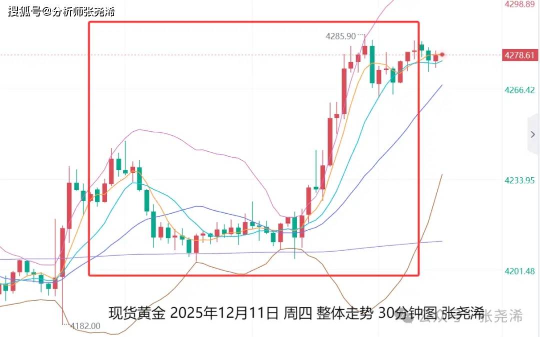 上交易日周四(12月11日):国际黄金继续反弹走强收阳,多头动力加大,并有所突破近期连续反弹的阻力压制,暗示后市看涨预期增强,短期有望继续反弹上行,触及4380美元乃至更高位置。