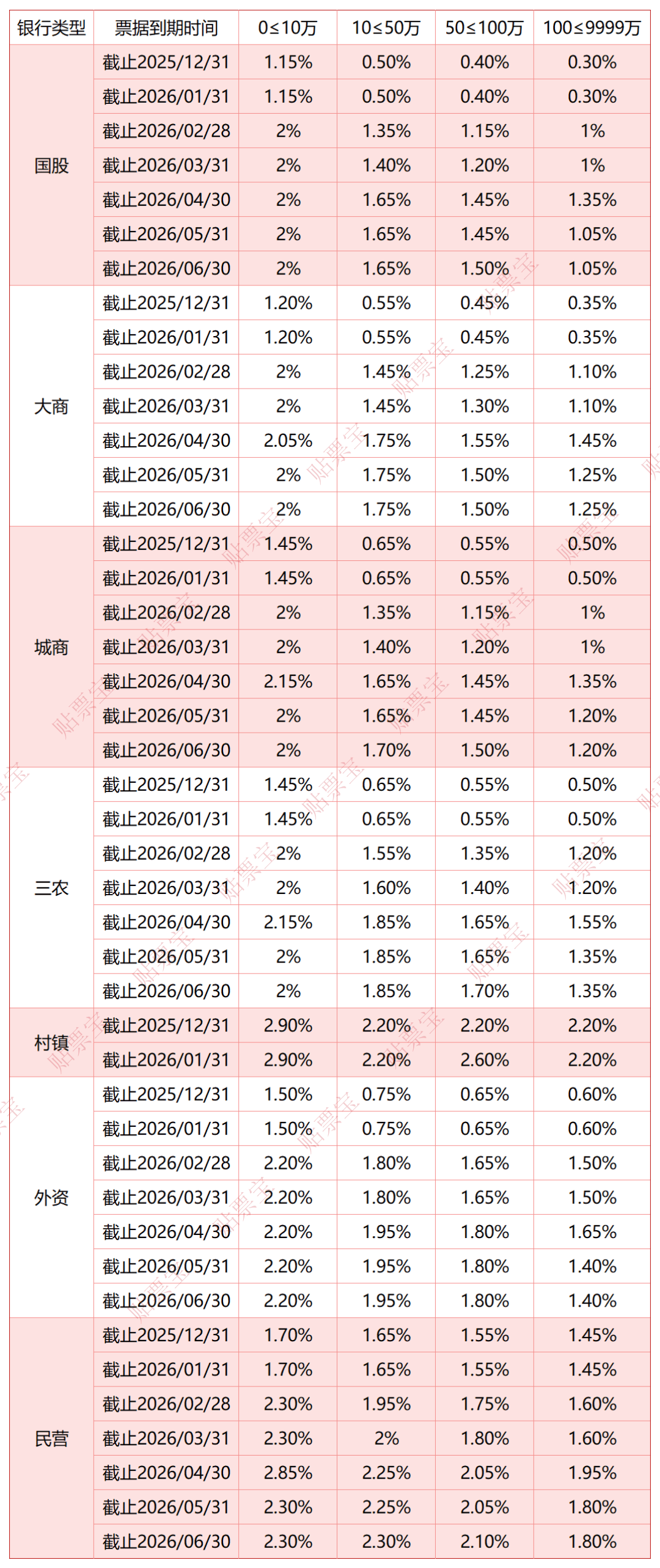 以下为2025年12月12日的银行承兑汇票贴现利率报价表(来源贴票宝):
