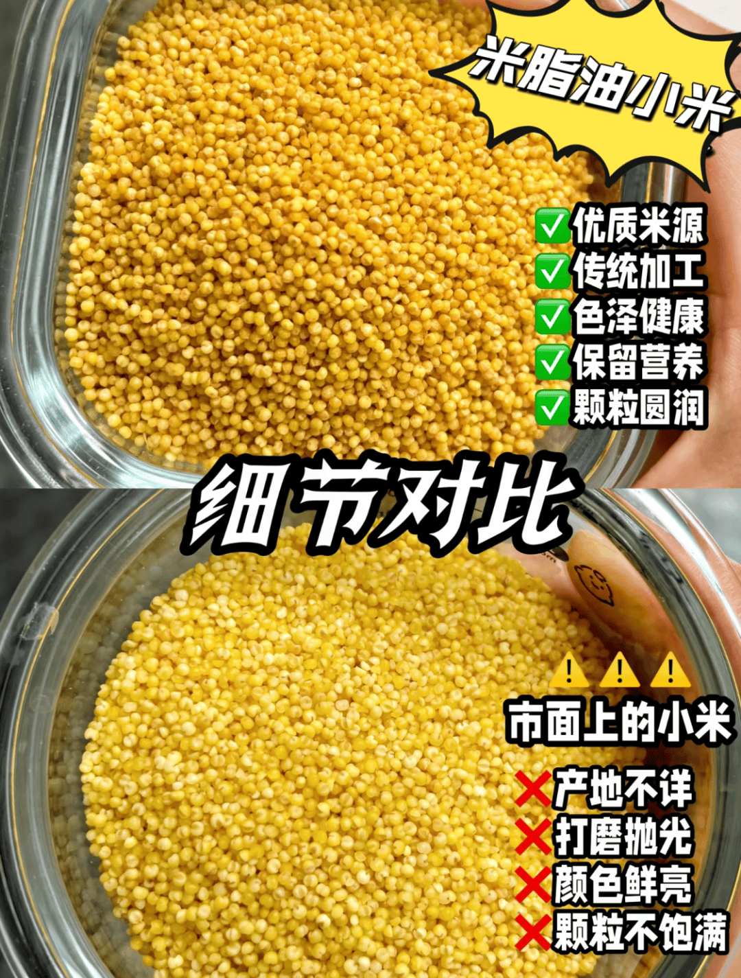 给家人们准备的都是2025年秋收的小米,每一粒都是现磨现发,没有陈米、没有抛光,打开袋子就能闻到天然谷香。