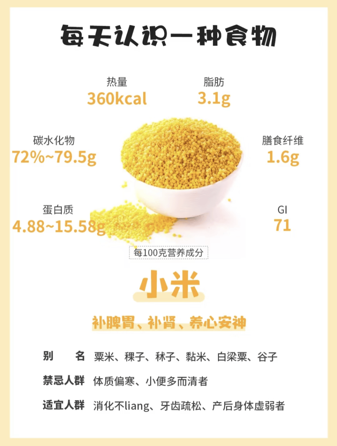 小米,作为五谷中的养胃 “黄金谷物”,富含蛋白质,碳水化合物、钙和多种维生素