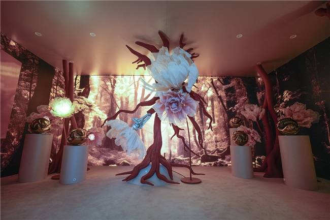 快闪体验店中最吸睛的当属“抱抱森林炼丹之旅”沉浸式互动区,等候参与的队伍蜿蜒数十米,许多家庭、情侣、朋友结伴前来。互动装置前,参与者们伸出双臂,触发红外传感器,巨大的花朵雕塑随之缓缓绽放,暖黄色灯光映照着一张张洋溢着惊喜与感动的脸庞。