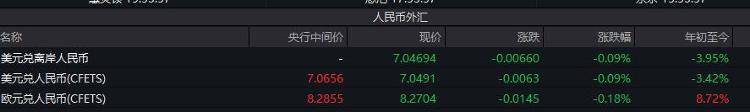 12月15日,人民币兑美元中间价报7.0656,下调18个基点。截至发稿,在岸人民币兑美元报7.0491,日内涨63个基点;离岸人民币兑美元报7.04694,日内涨66个基点。