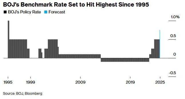 外界普遍预计,植田和男领导的政策委员会将在周五结束为期两天的会议时,将基准利率上调25个基点至0.75%。在植田和男任内,这将是首次出现受访的50位经济学家全部一致预期这一举措。