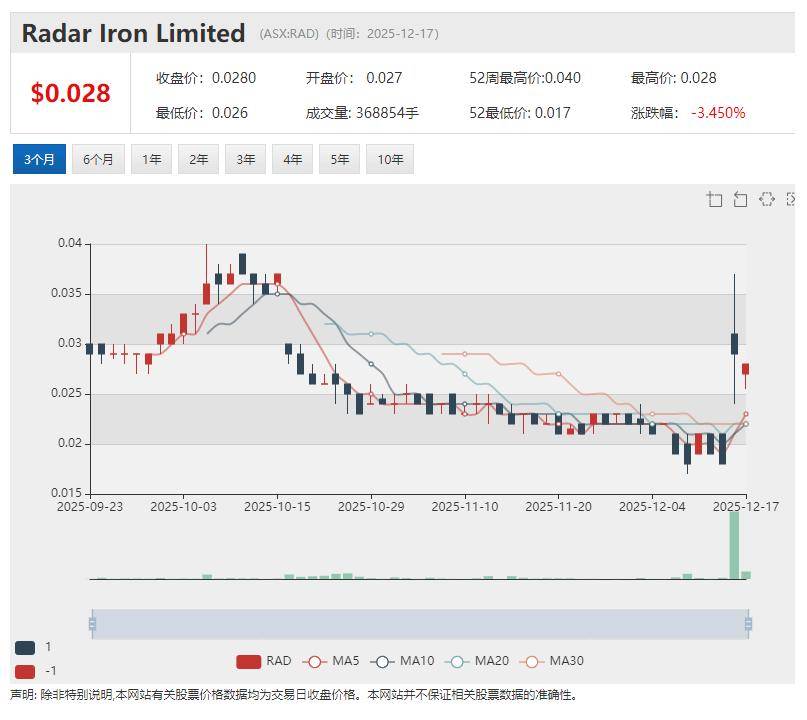 澳华财经在线数据库显示,RAD最新价0.029澳元,已发行股本35.4亿股,市值1.03亿澳元。