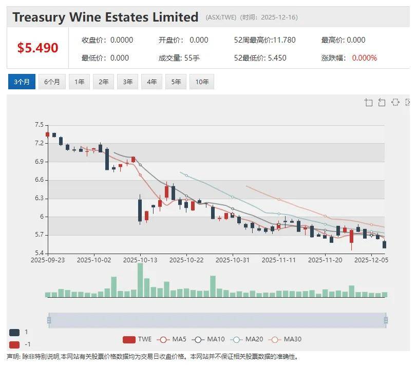 Treasury的经营表现引发市场担忧。TWE上周五收于5.49澳元,过去一年股价已跌逾50%,市值缩水至44亿澳元。