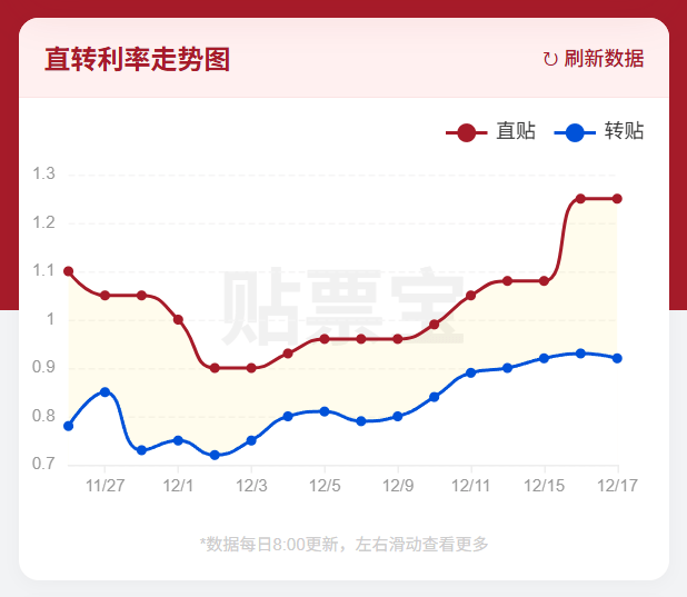 以下为2025年12月18日的银行承兑汇票贴现利率报价表(来源贴票宝):