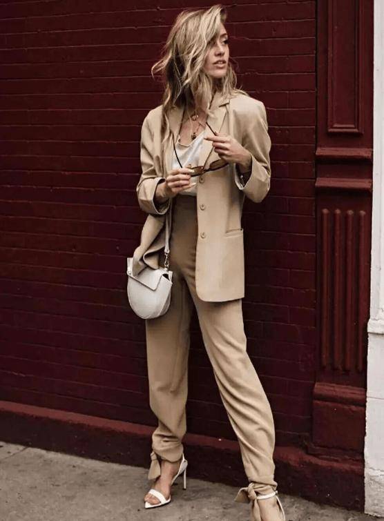 将衣摆控制在膝盖下2-3cm处,搭配尖头鞋延伸腿部线条。丹麦博主Sarah的卡其西装示范精准诠释3:7黄金比例:内搭塞至胯上,裤装覆盖脚背,通过硬挺材质与垂坠面料的叠加,实现视觉增高15cm的惊艳效果。