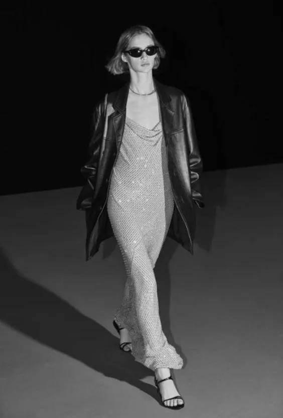 混搭垂坠雪纺与挺括牛仔,利用材质硬度差塑造层次。推荐"针织连衣裙+皮质腰封"组合,通过软硬碰撞强化曲线,搭配及膝靴实现腿部视觉延伸。