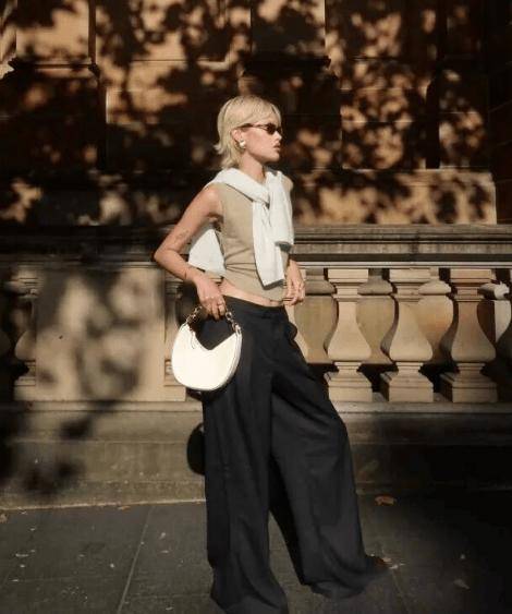 “甜辣风”的小个子博主Jamie Nguyen 也是在用比例穿搭穿出了1米8的气场。宽松的黑色阔腿裤不仅没有拖沓,还增加了几分气场。搭配紧身上衣,酷感十足。