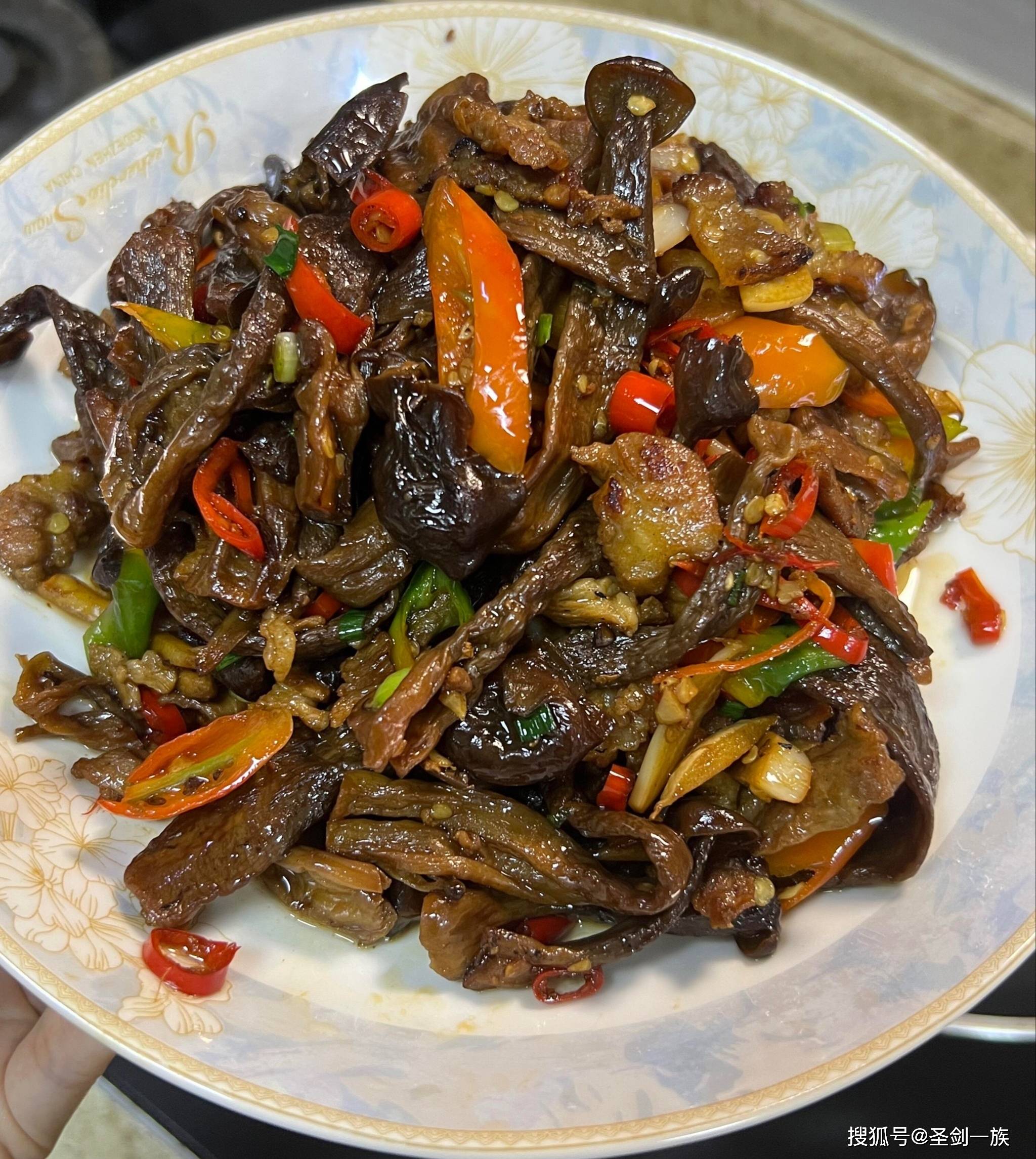 三、剁椒鹿茸菇炒五花肉