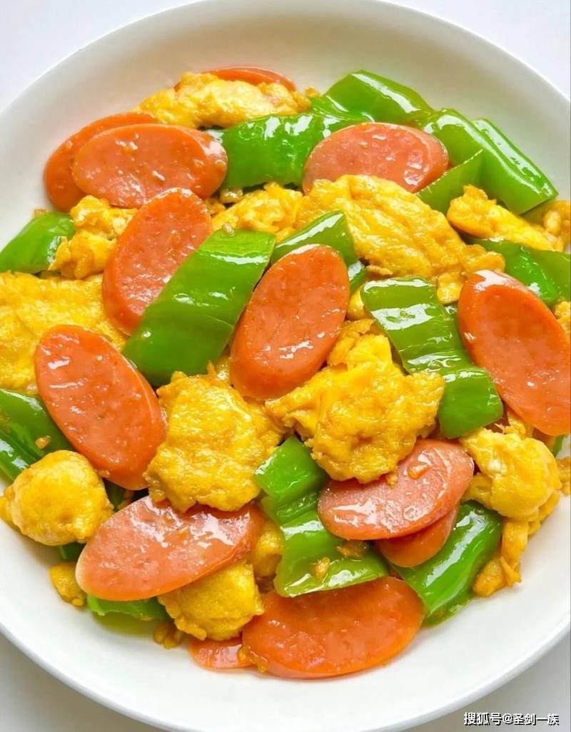一、排骨肠炒鸡蛋彩椒