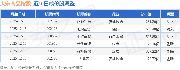 近10日内大宗商品(000979)指数成份股做了调整,新纳入了3只股票,剔除了3只股票。