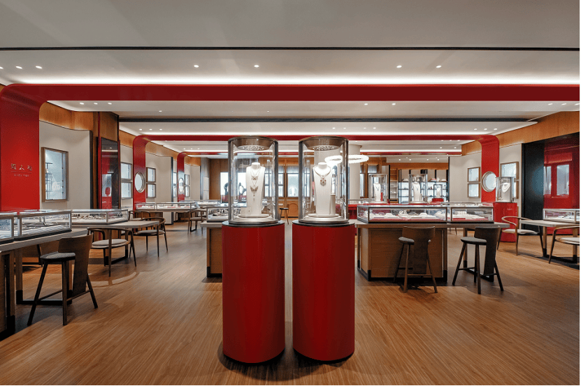 2025年12月23日,周大福珠宝在上海高奢地标港汇恒隆广场的新形象店正式开业,这是品牌继南京东路店后在上海布局的第二家高端门店,标志着其高端化战略再进一步。门店汇聚国际奢牌与本土头部品牌的港汇恒隆广场,与卡地亚、梵克雅宝等国际品牌及老铺黄金、宝王府等本土同行同台竞技,借助圈层协同效应精准触达高净值客群。