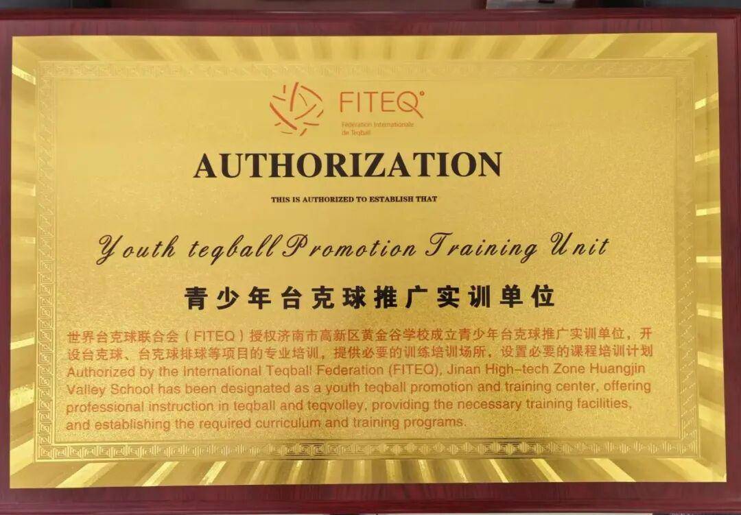 黄金谷学校将以此次授权为重要契机,正式开设台克球、台克球排球专项培训课程。课程采用“理论+实践”深度融合的教学模式,一方面邀请山东体育学院专业教练团队驻校开展技术指导,系统覆盖基础规则解读、核心控球技巧训练、团队战术配合演练等关键教学内容,确保培训的专业性与系统性;另一方面搭建多样化实践展示平台,通过举办校内联赛、组织校外交流赛事等活动,充分激发学生参与热情,助力学生稳步提升运动技能水平。同时,学校还将主动面向周边学校及社区开展台克球公益推广活动,分享实训经验与优质教学资源,助力构建区域化台克球运动发展氛围。