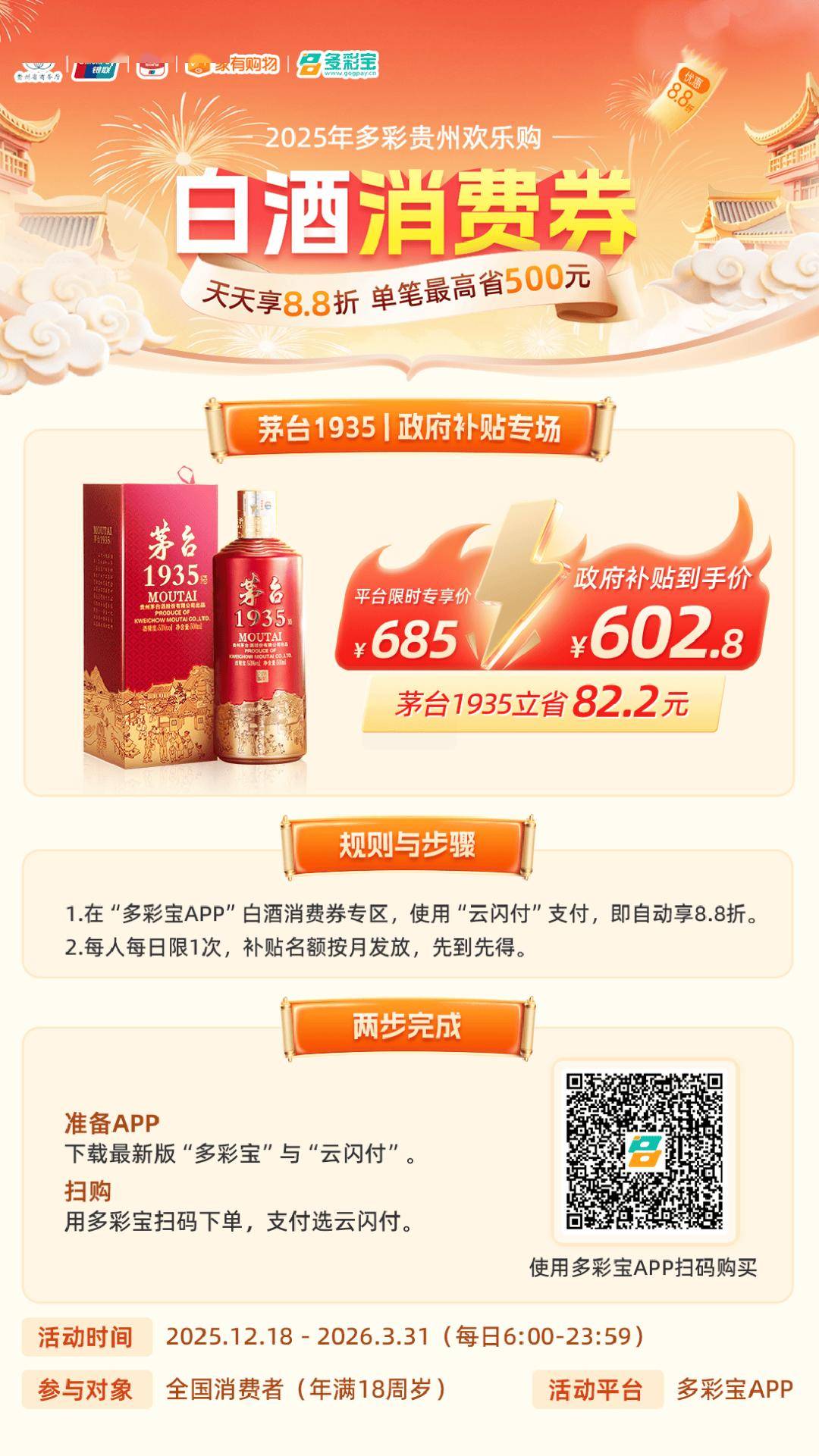 整个购买流程,必须全程在“多彩宝”APP内完成。请通过其首页的 【白酒消费券】专区 进入、浏览并下单。这是激活补贴的唯一钥匙。