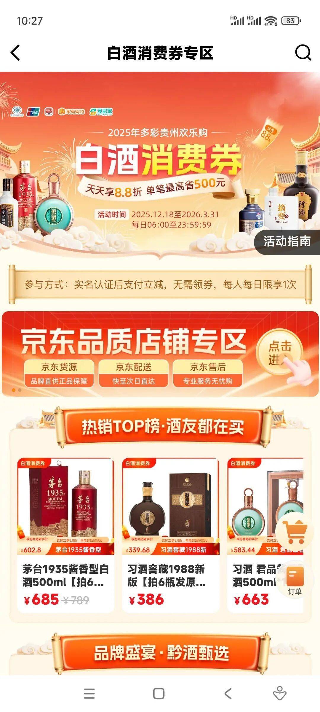 这个明确的数字,来自“多彩贵州欢乐购”白酒消费券的8.8折补贴。