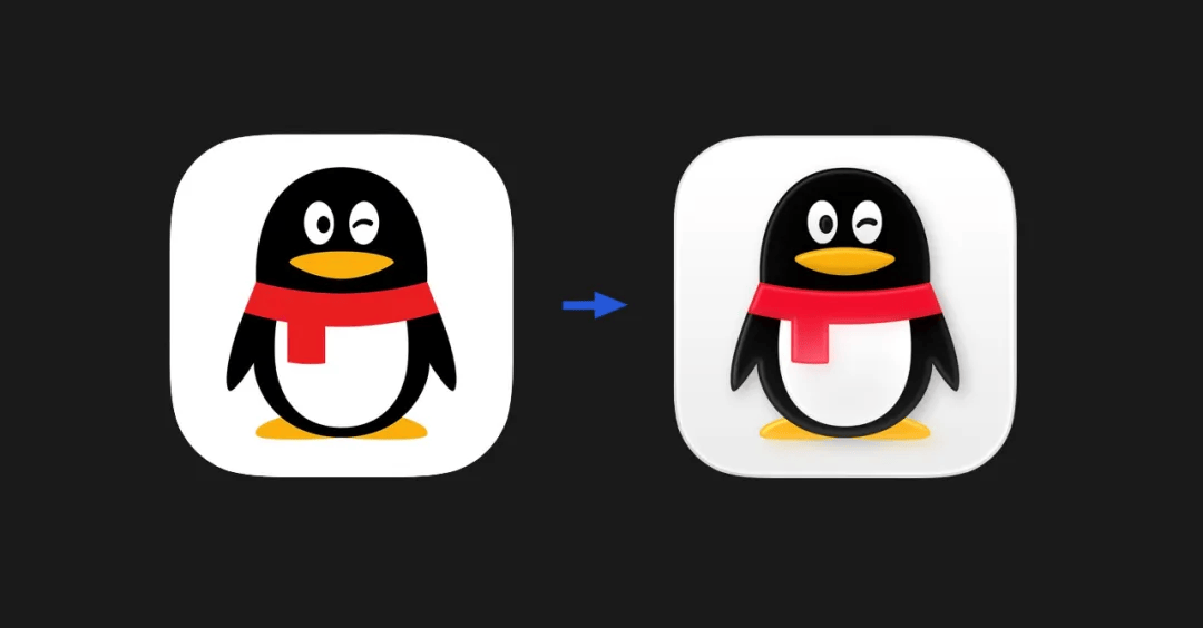企鹅本体的造型变化并不大,主要是图标边缘加入了阴影设计。