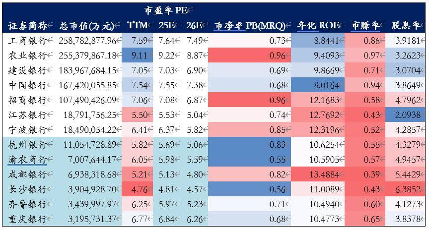 成都银行当前股息率5.44%,高于四大行及招商银行,略次于长沙银行。