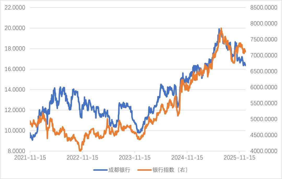 然而,曾经的行业黑马——成都银行,年内涨幅仅为0.25%,显著跑输行业大盘。这家在2020年至2022年累计上涨72%、2024年全年涨幅高达61.32%的区域性银行龙头,为何在2025年停下了脚步,陷入了“成长陷阱”?