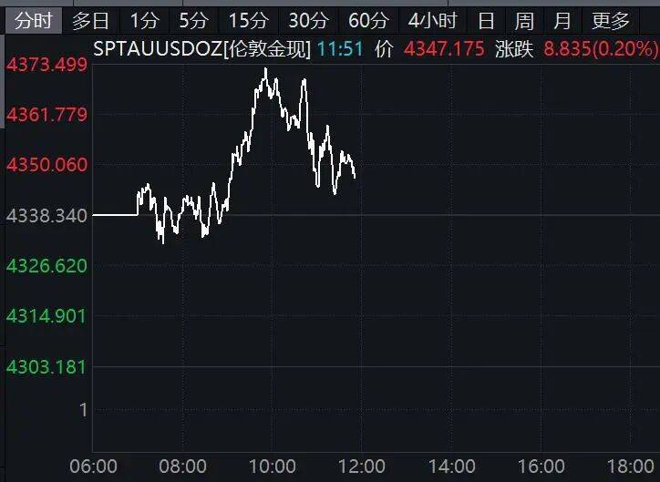 现货黄金短线走低20美元,截至发稿,报4347.175美元/盎司,现货白银大跌超5%。现货钯金跌逾4%。现货铂金跌幅扩大至8%,