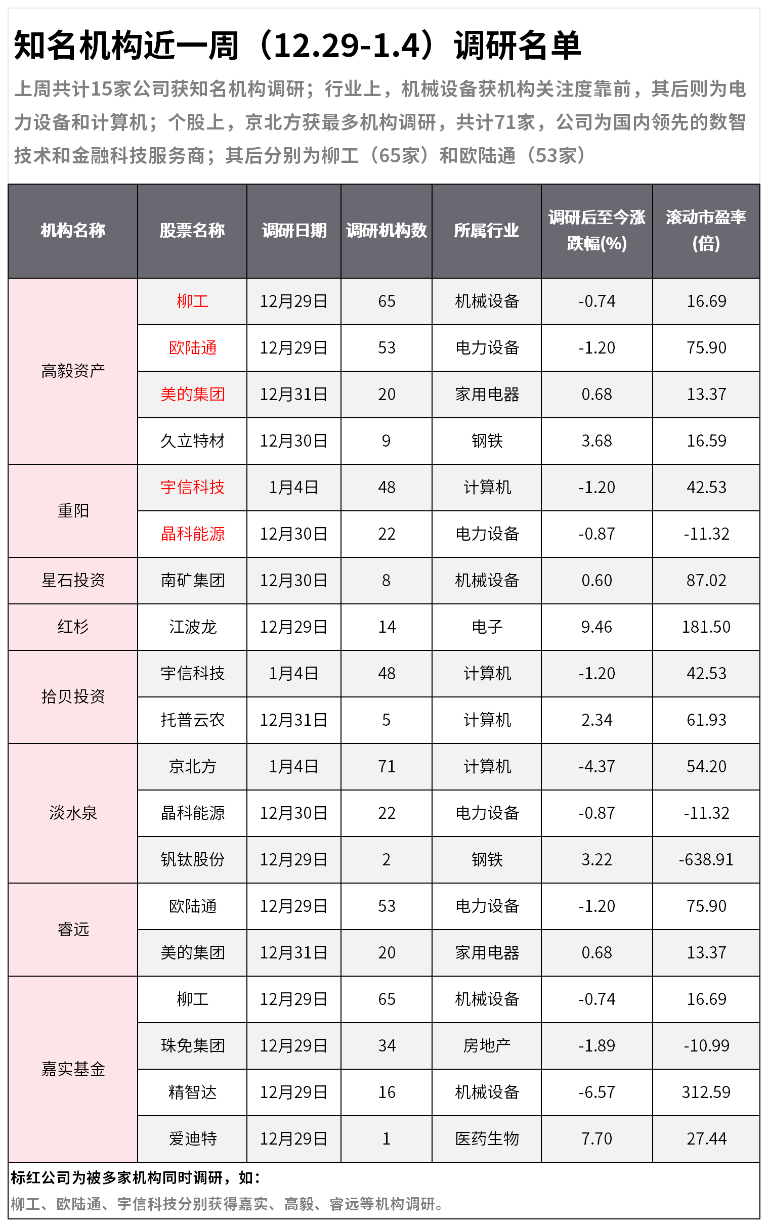 知名机构近一周(12.29-1.4)调研名单:机构扎堆这只数字货币龙头