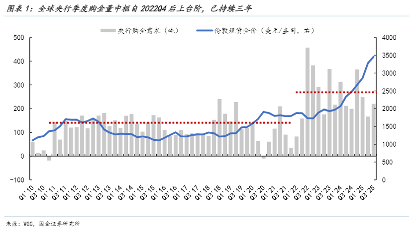 此外,在去美元化的趋势下,全球央行仍是黄金的坚定买方。即使在连续3年的显著增持后,央行持有的黄金数量和历史上重要的地缘政治转折点相比仍然偏低。据世界银行数据,2024年全球央行储备中黄金储备占比约为22%,这一比例相较1990年冷战末期、1980年滞涨末期仍处于较低水平。而根据世界黄金协会2025年对央行的调查数据,76%的受访者表示未来5年黄金占比将温和上升,这一比例高于此前3年的调查结果。