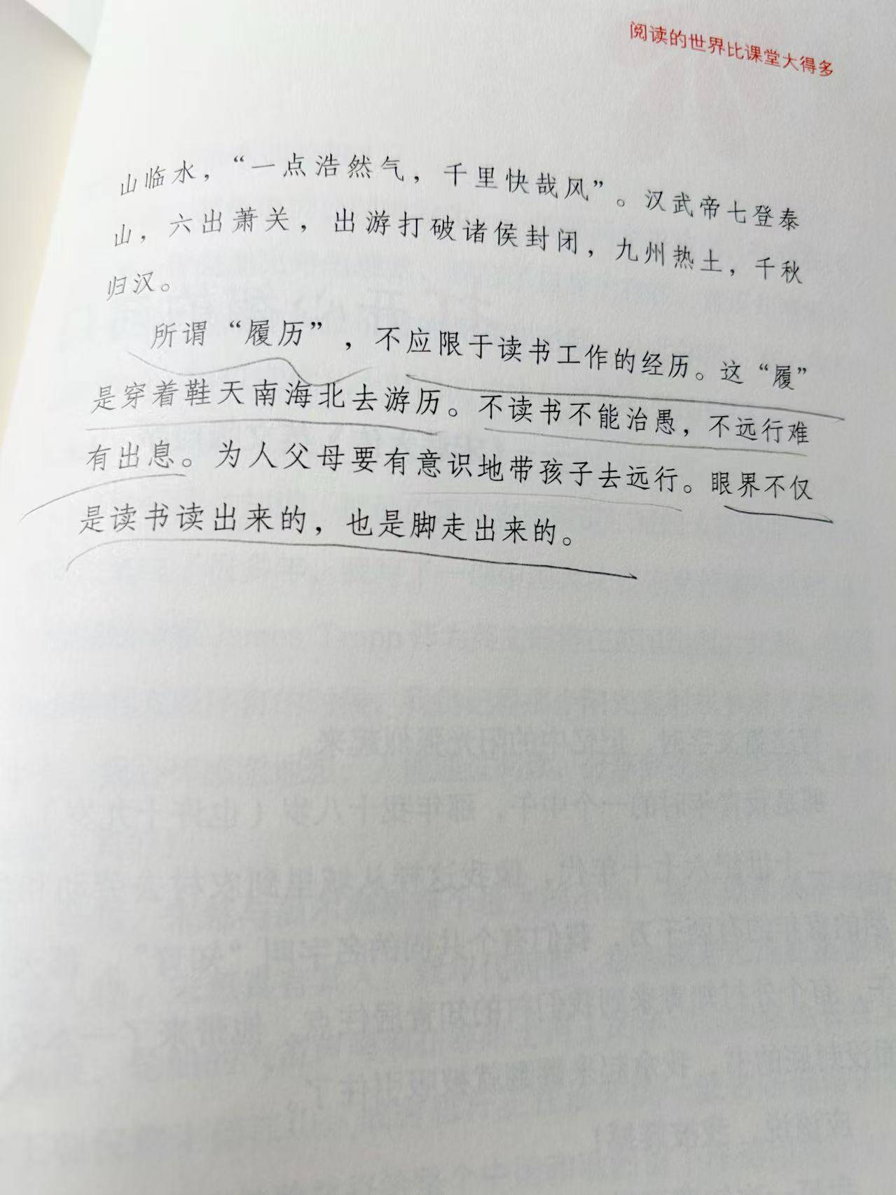 孔子周游列国,才得以丰富见识、传播思想;司马迁走遍大半个神州,才写出了千古绝唱《史记》;李白年轻时仗剑远游,饱览山河壮阔,才吟出“飞流直下三千尺,疑是银河落九天”的千古名句。