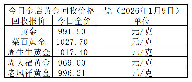 今日黄金回收价格波动较大,不同品牌回收价差也较大,以下为部分金店回收参考价: