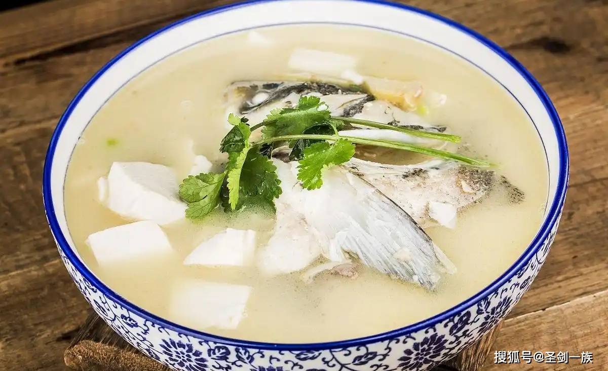 材料:鱼头1个、豆腐200克、姜片、葱段、料酒、盐、白胡椒粉。