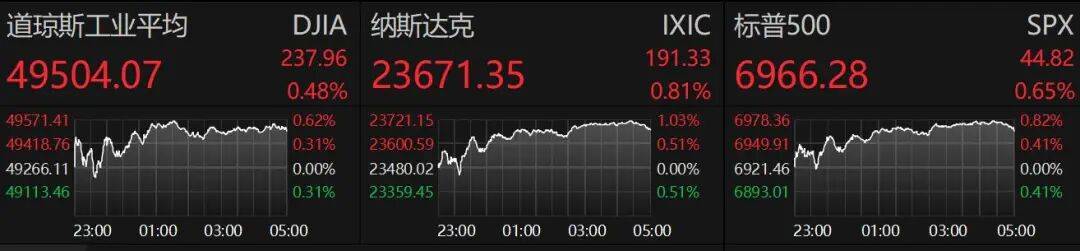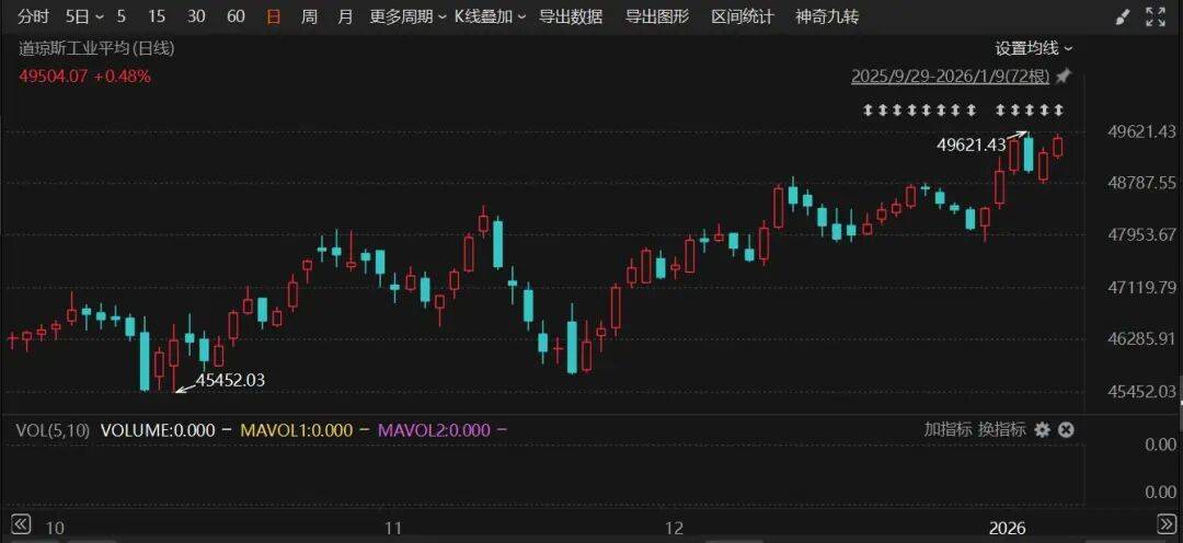 1月9日,美股三大指数集体收涨,纳指涨0.81%,标普500指数涨0.65%,道指涨0.48%。其中,道指、标普500指数均创历史收盘新高。