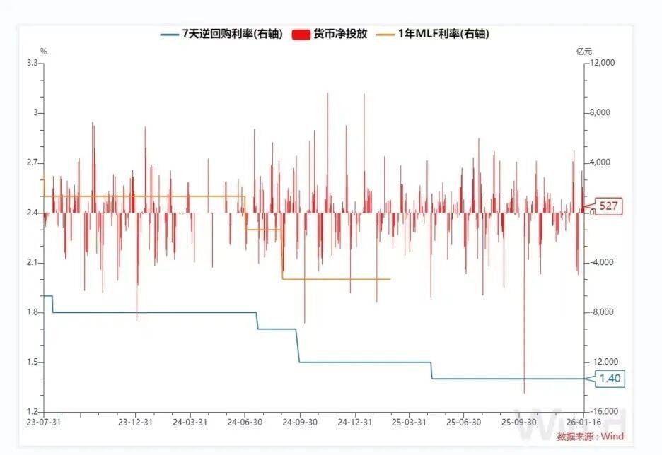 央行公告称,1月16日以固定利率、数量招标方式开展了867亿元7天期逆回购操作,操作利率1.40%,投标量867亿元,中标量867亿元。Wind数据显示,当日340亿元逆回购到期,据此计算,单日净投放527亿元。当周实现净投放8128亿元。