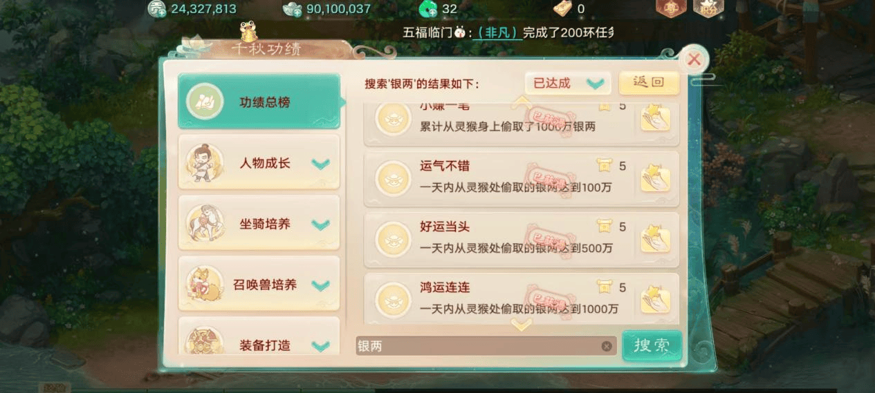 天降灵猴的银两收益遵循单一回合乘二原则,其核心计算公式为:单次收益=2×最后一回合灵猴偷取的银两金额。即使前10回合偷取500万,最后一回合仅偷1万,奖励仍为2万。