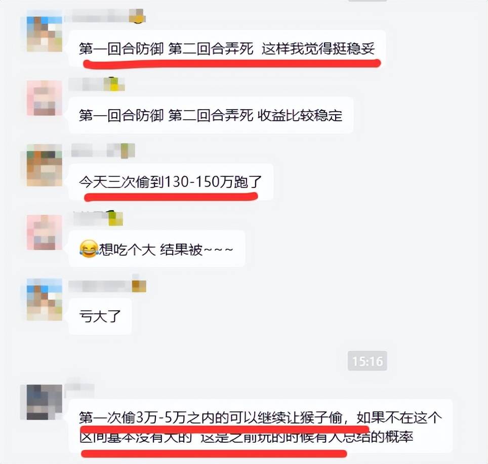 如此反复,你起码会回本,有好几次都是被偷到20回合后,突然出现偷了200多万,我一棒子打死,然后就回本了....这是之前玩的时候有人总结的概率。