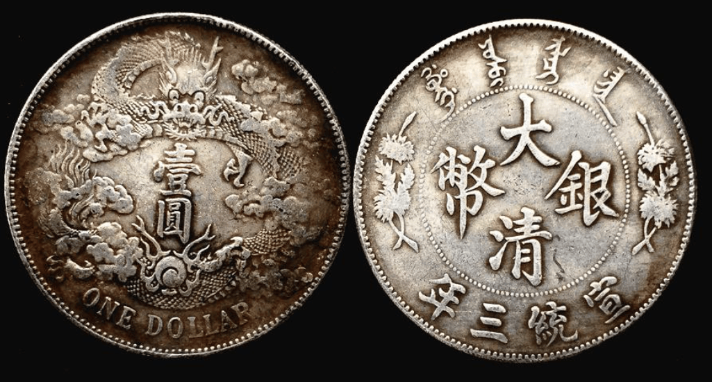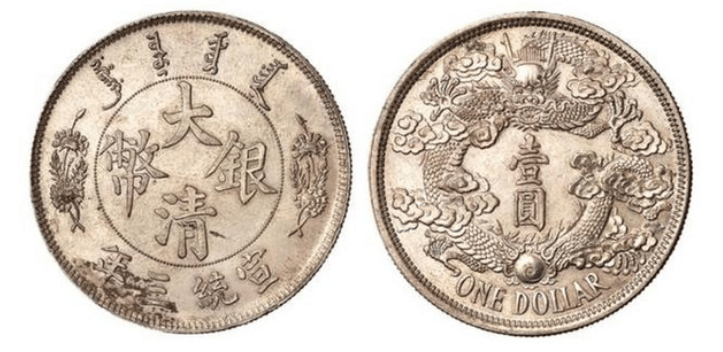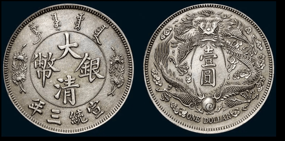 大清银币,又称宣统三年大清银币,是我国清朝末年发行的货币。其设计独特,工艺精湛,正面镌刻有宣统三年的年号,以及“大清银币”字样,周围饰以双龙图案。背面镌刻有面额“壹圆”,以及重量、“库平七钱二分”字样,同样周围饰以双龙图案。大清银币的特点在于采用高纯度的白银铸造,质地厚重,成色统一,易于识别。