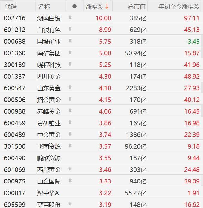 A股异动丨黄金股强势,湖南白银涨停创2017年3月以来新高