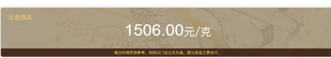 中国黄金足金饰品价格突破1500元,来到1506元/克。