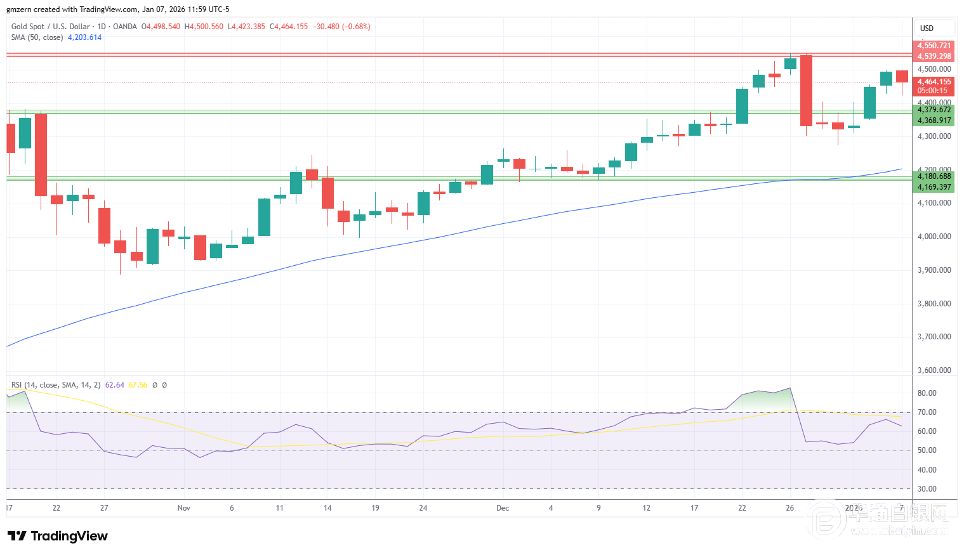 【华通白银网1月8日】•黄金未能收于4500美元/盎司上方。
